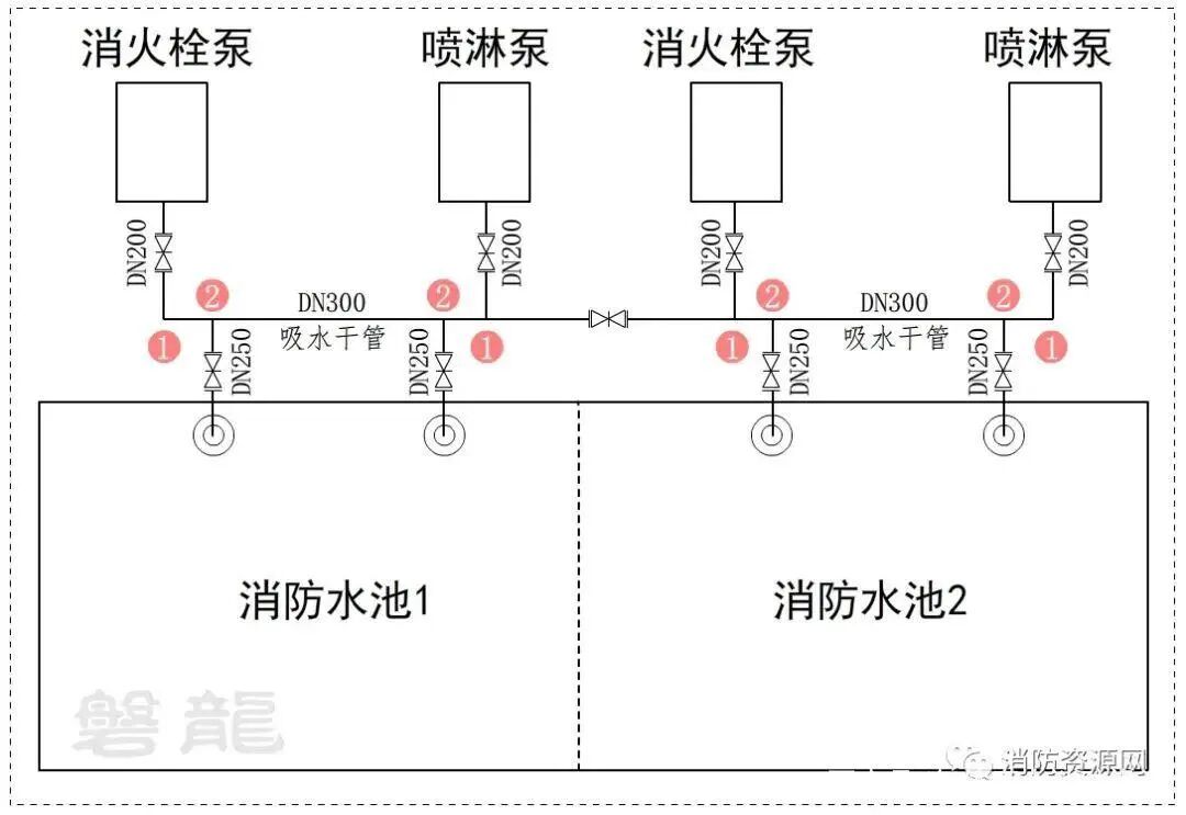 2、从水池至水泵的吸水管路,下游管路管顶不应低于上游管路